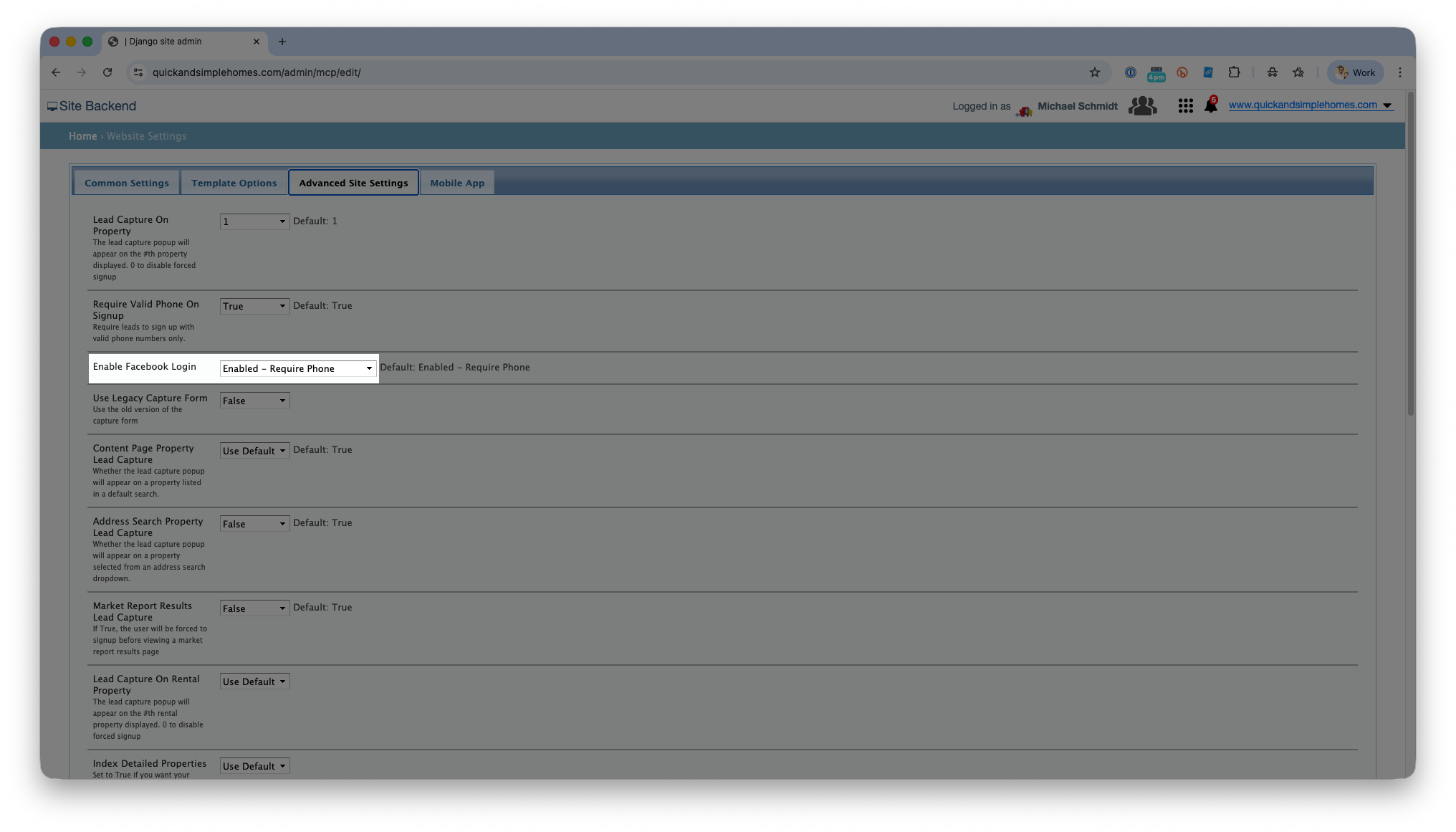 3. Click Advanced Site Settings