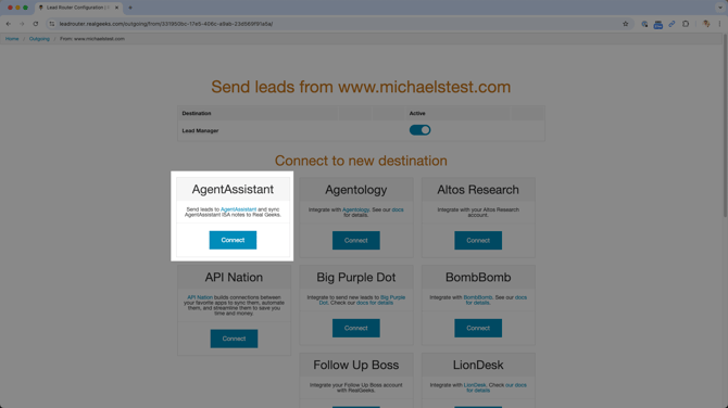 - Go to the Real Geeks Lead Routing page