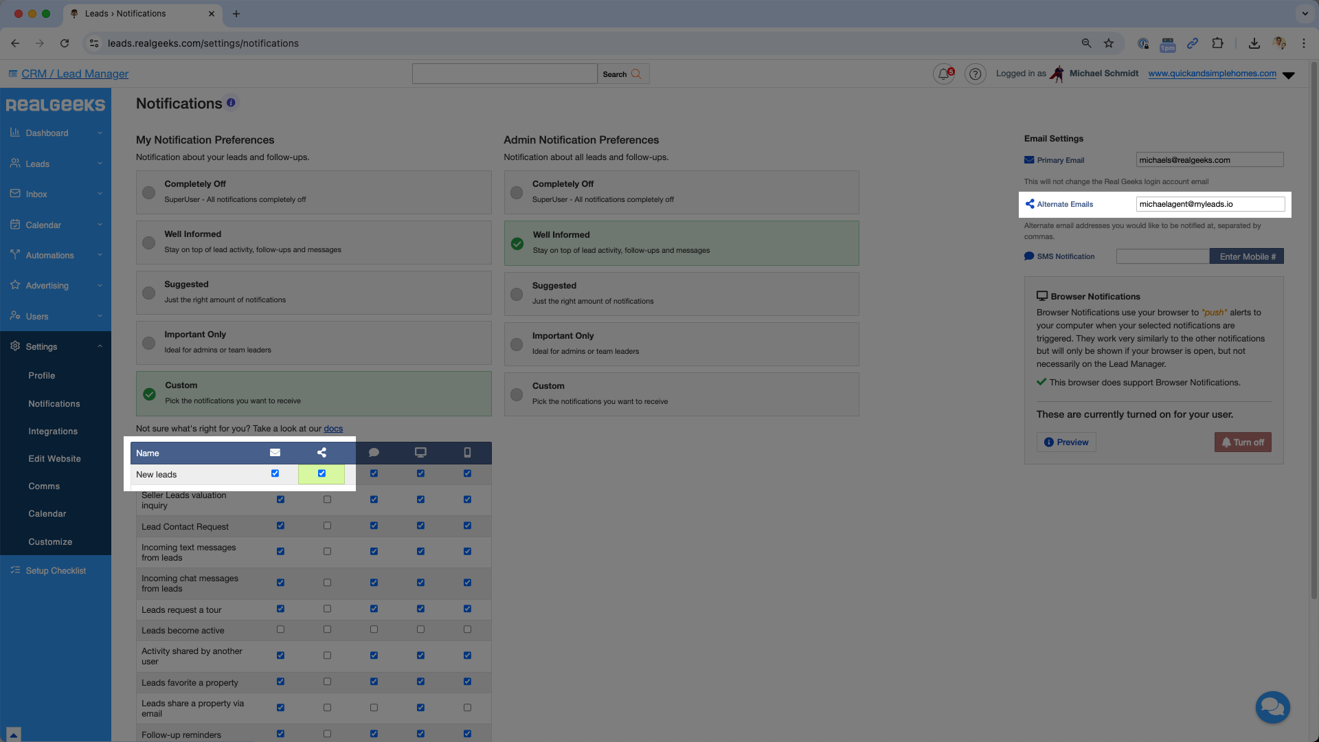 - Go to leads.realgeeks.com/settings/third_party_integration