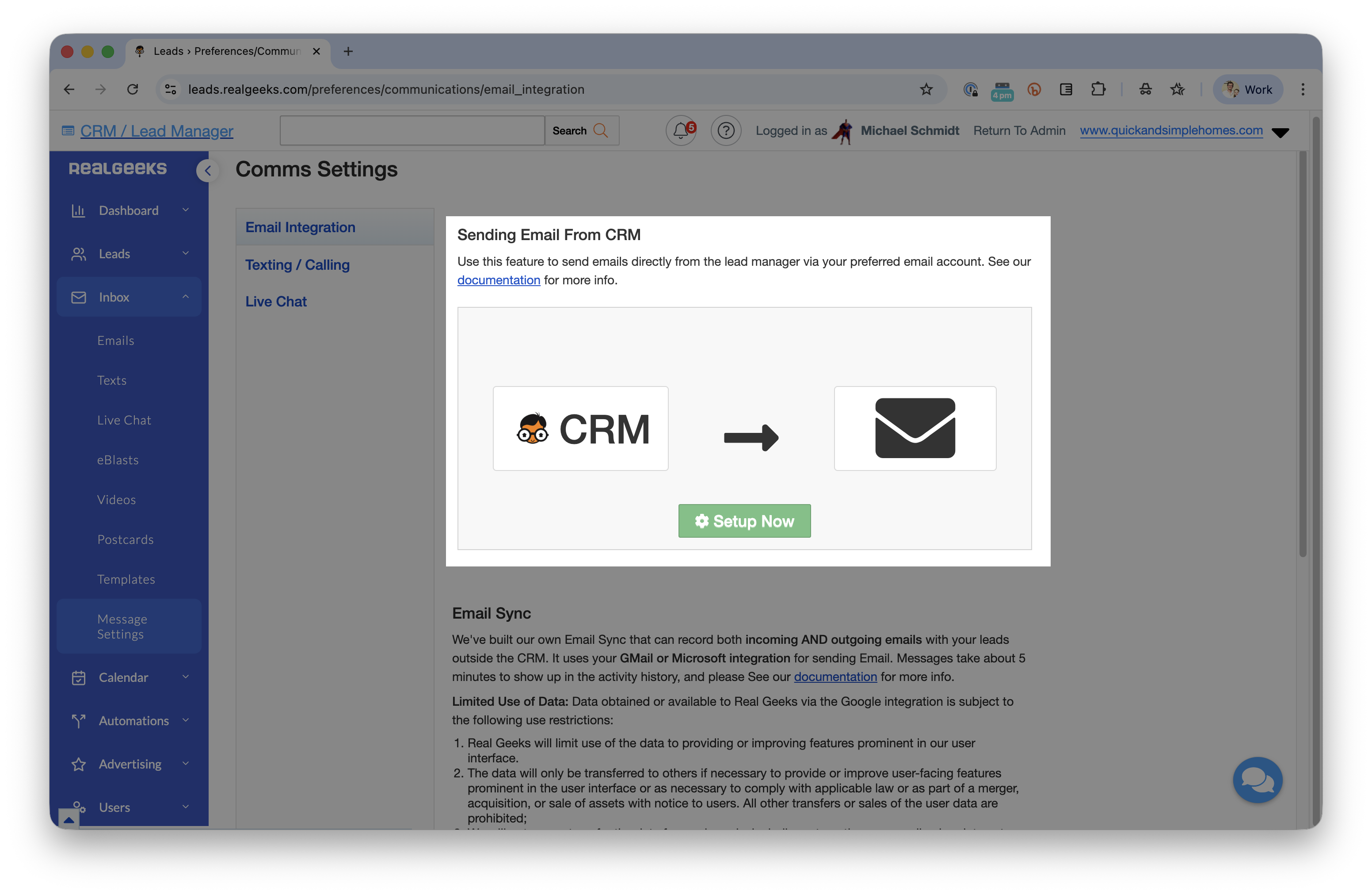 Connect your email to Real Geeks so you can send and receive messages to your leads directly through the system.