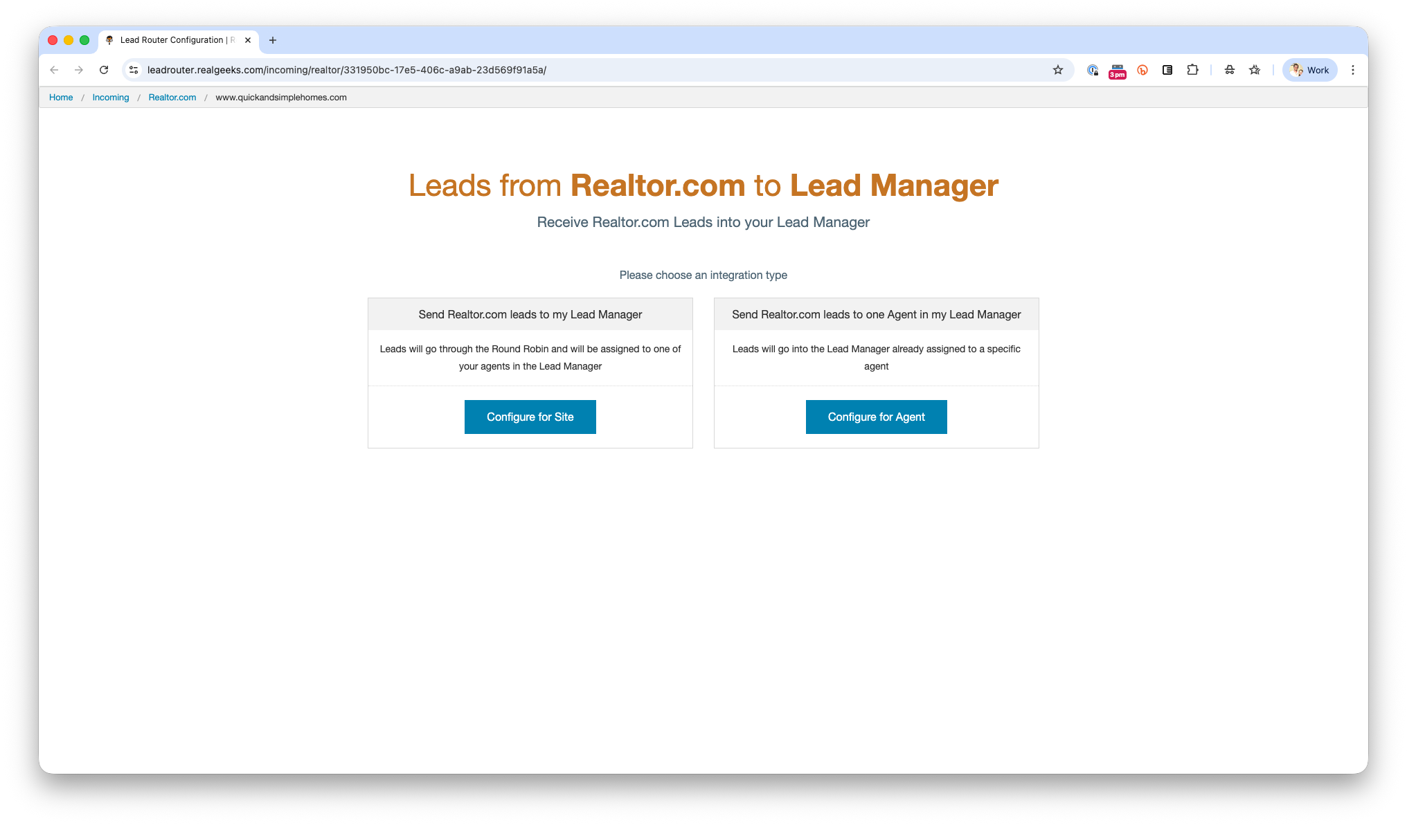 - Send Realtor.com leads to one Agent in my Lead Manager: Send all Realtor.com leads to a single agent in the CRM