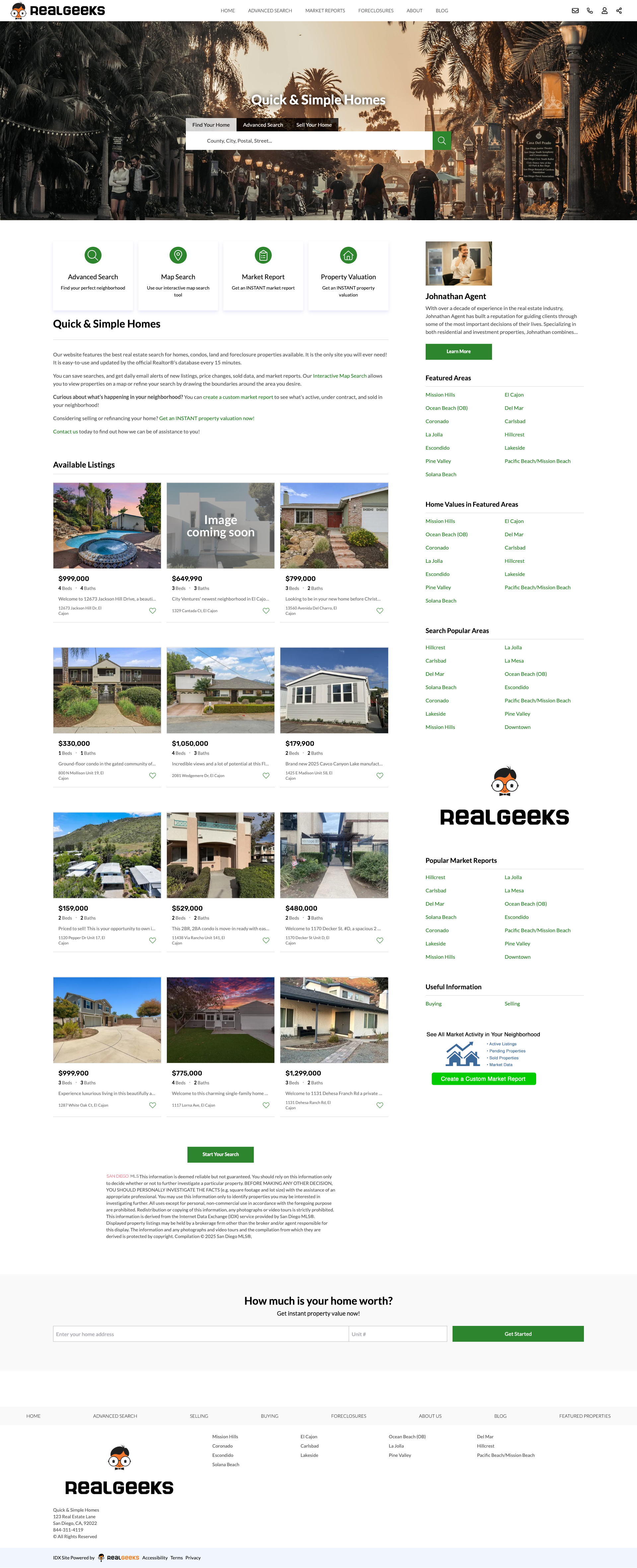 A clean, traditional real estate layout with simple navigation and familiar structure. Ideal for agents who want a classic, easy-to-use design that keeps the focus on home search and listings.