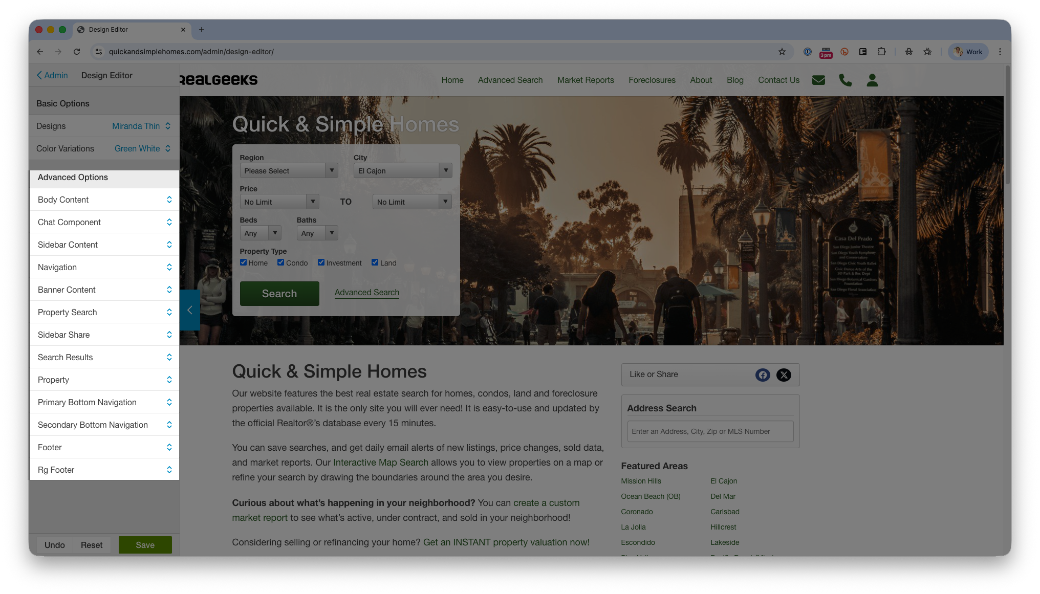 Design Editor: Customize Your Real Geeks Website Template and Colors