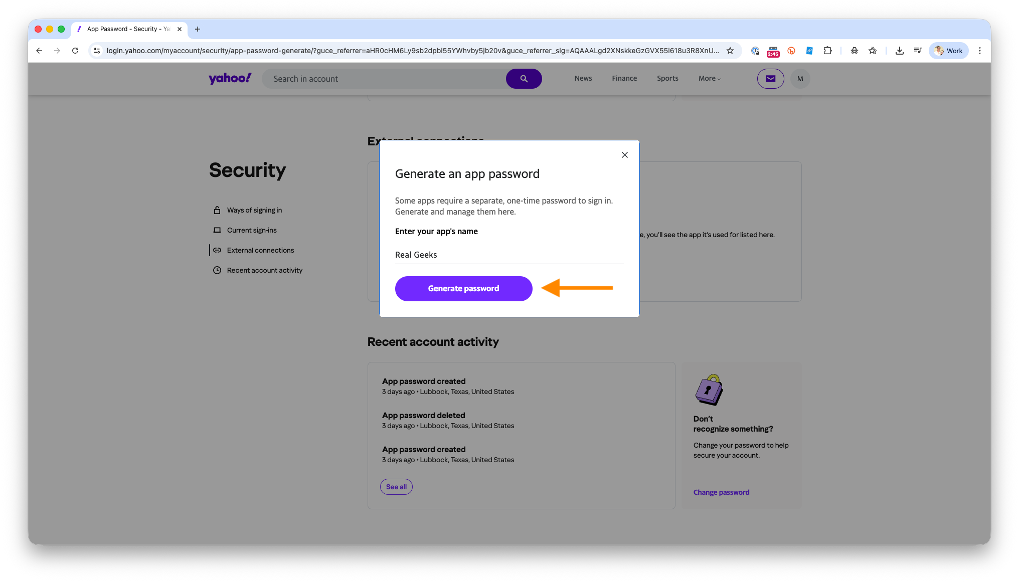 - Click Generate App Password