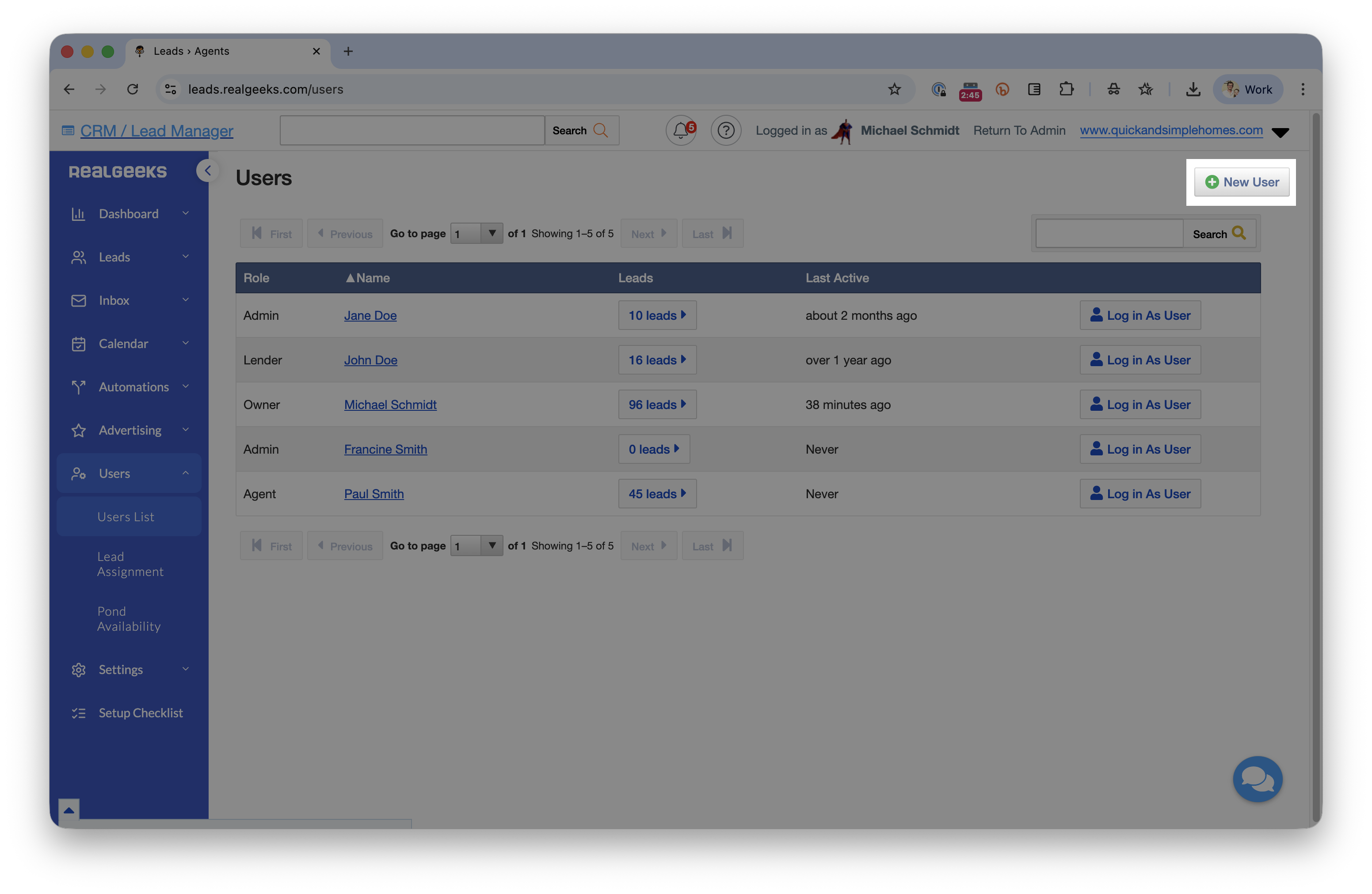Once you are logged into your Lead Manager, follow these quick steps to add a new user: