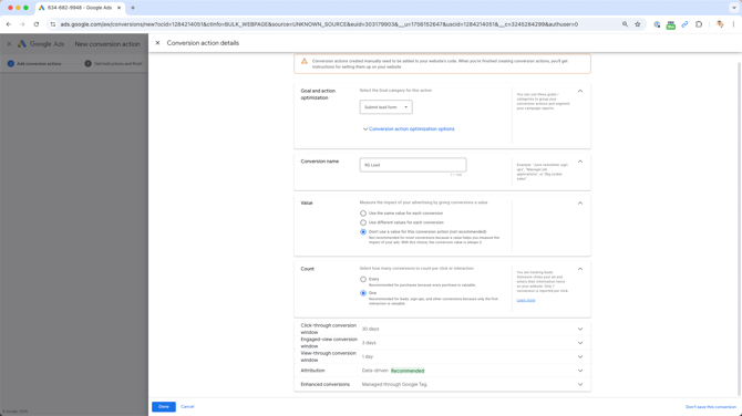 - Establish a conversion Value - This is used to measure the financial impact this type of conversion has on your advertising