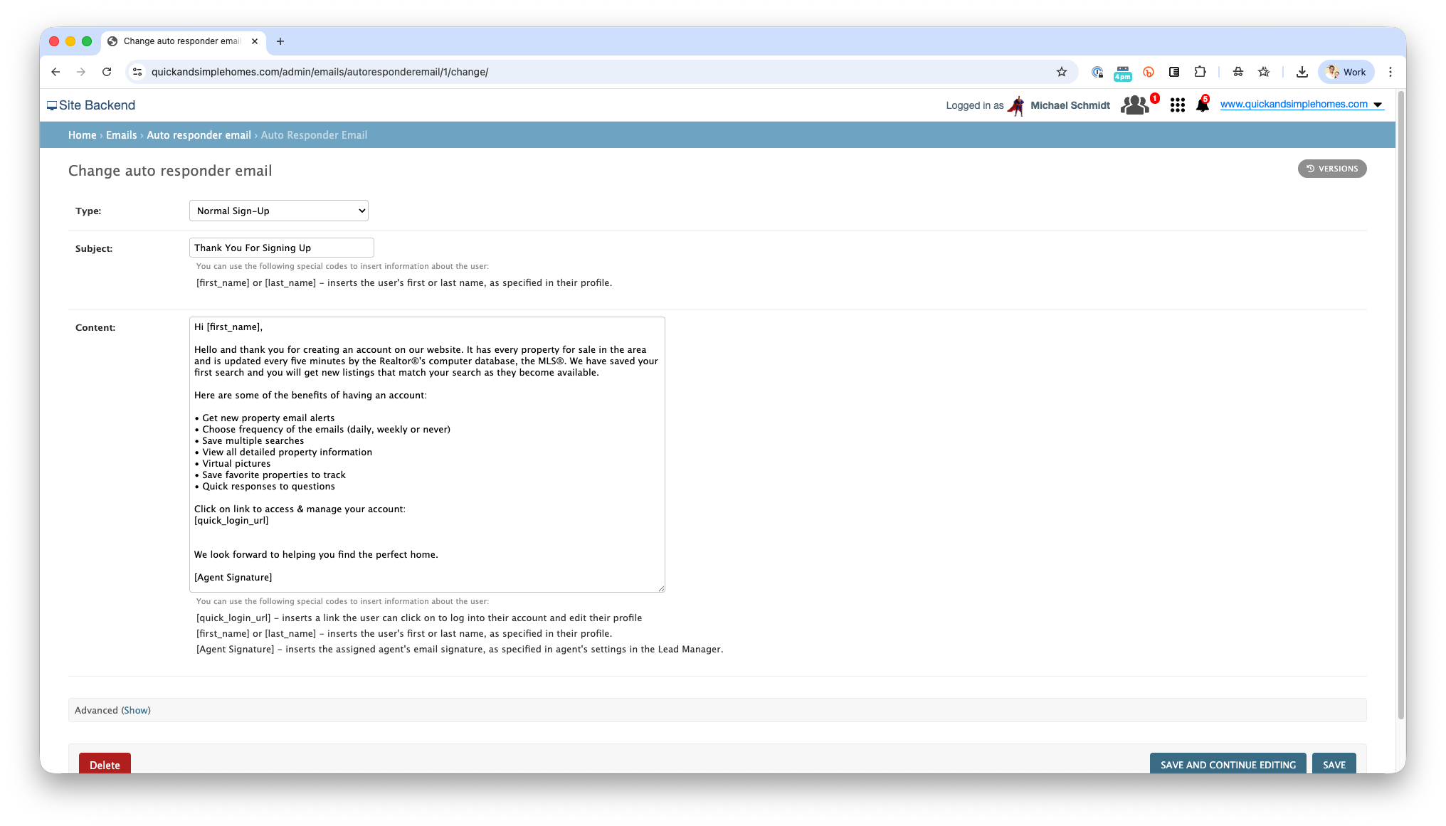 Website Welcome Emails (Also called Autoresponder Emails) are automatically sent when a new lead signs up on your Real Geeks website.