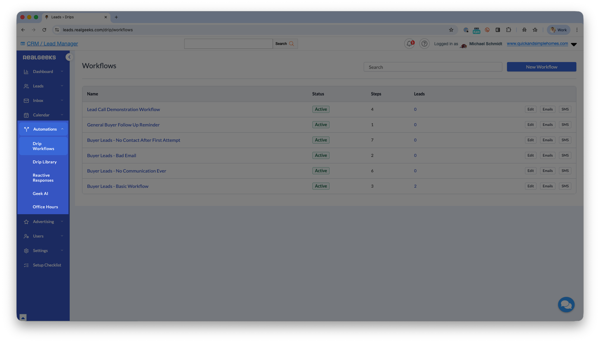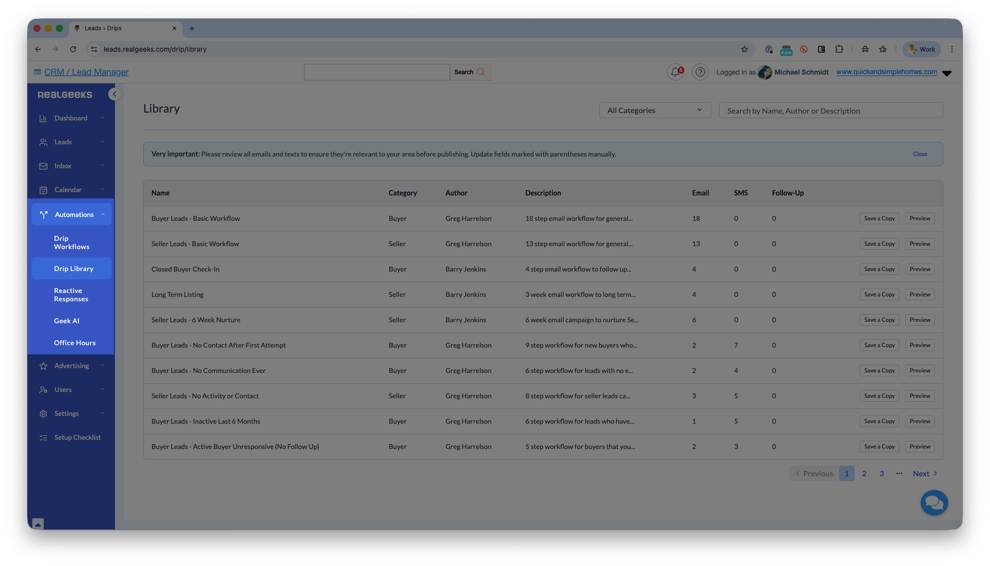 - Select Drip Library to browse pre-made Real Geeks Workflows you can use right away