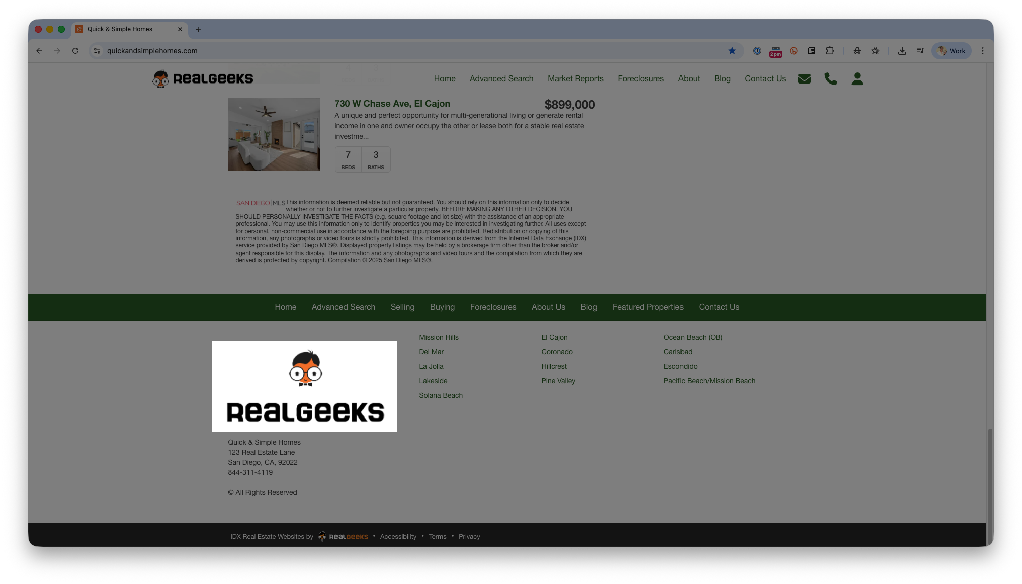 Use the bottom of your site for brokerage details, compliance logos, or disclaimers.