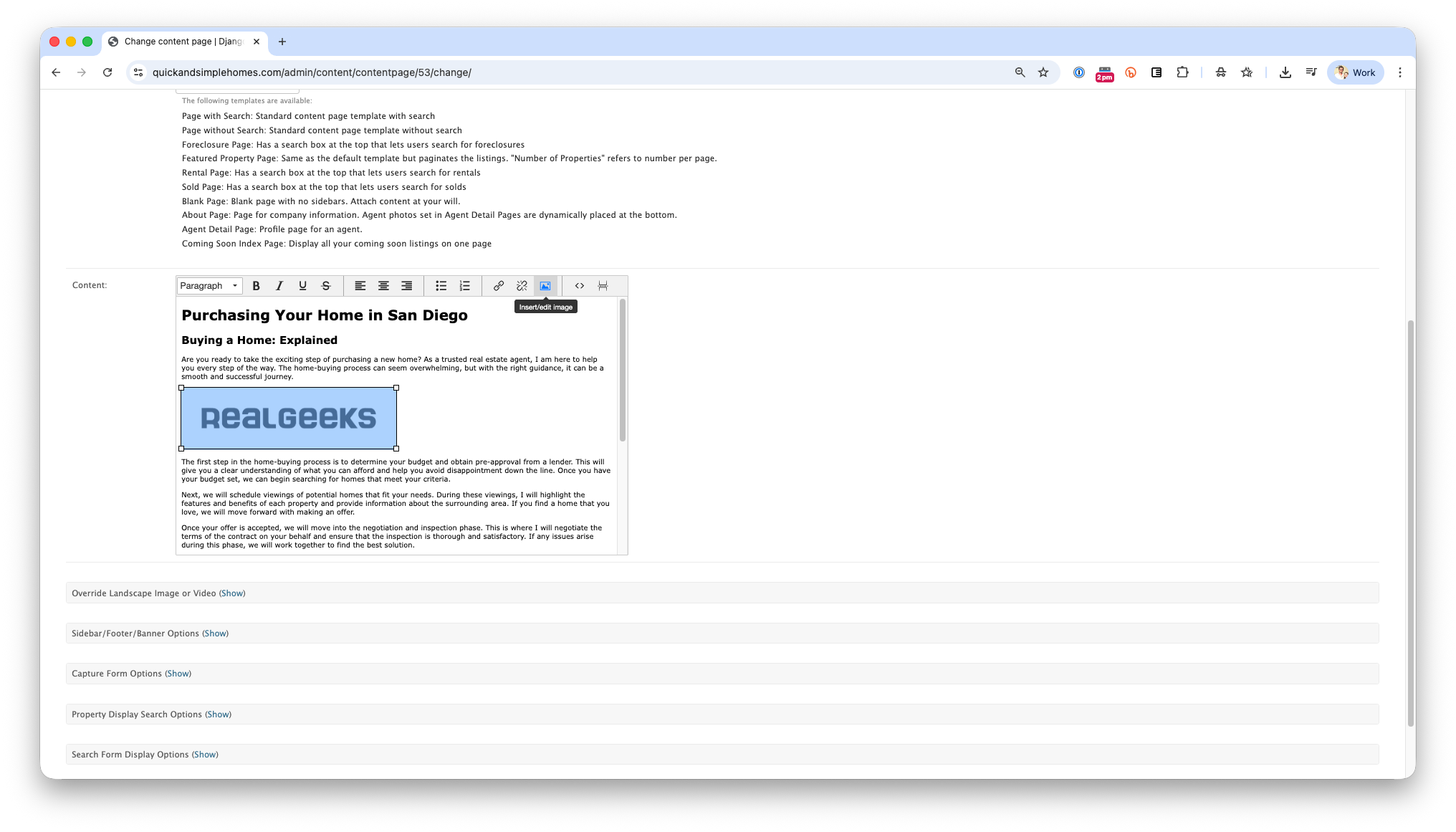 You can add a logo inside custom pages throughout your website such as the "about", "buying" or "agent profile":